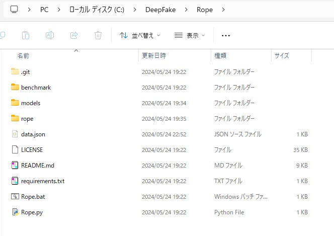- フォルダ内「 Rope_setup.bat 」ダブルクリックで起動
