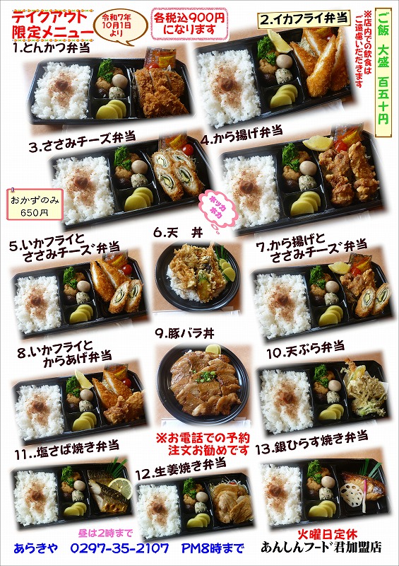 お持ち帰り 出前メニュー